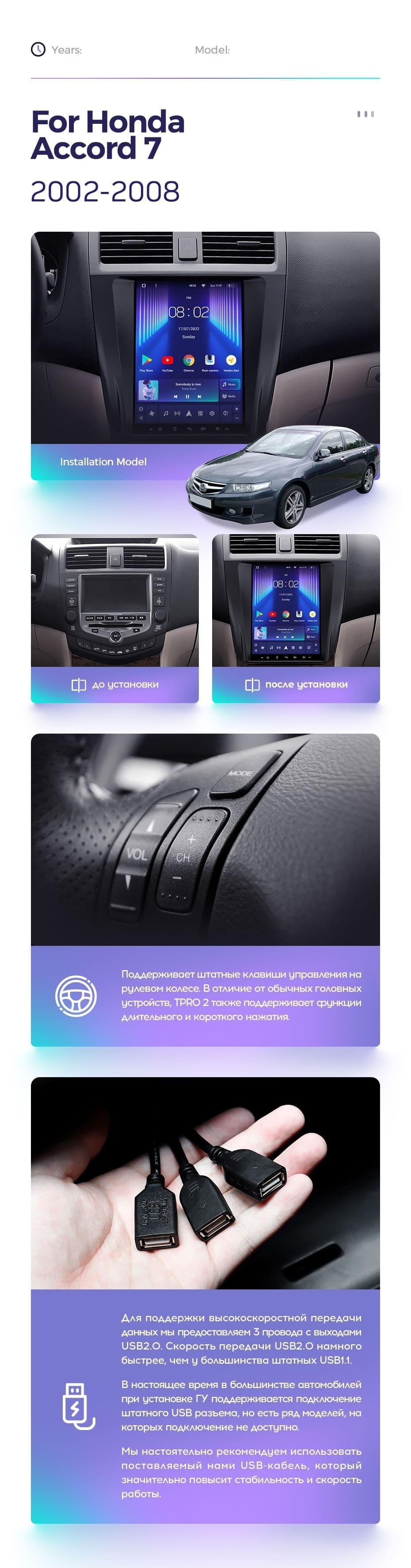 Штатная магнитола Tesla style Teyes TPRO 2 4/64 Honda Accord 7 CM UC CL (2002-2008) - купить всего за 42 200 руб. в интернет-магазине в Уфе Teyes.com.ru. ✓ Самый лучший выбор мультимедиа ✓ Лучшая замена штатному ГУ ✓ Тел. +7 (800) 775-31-74