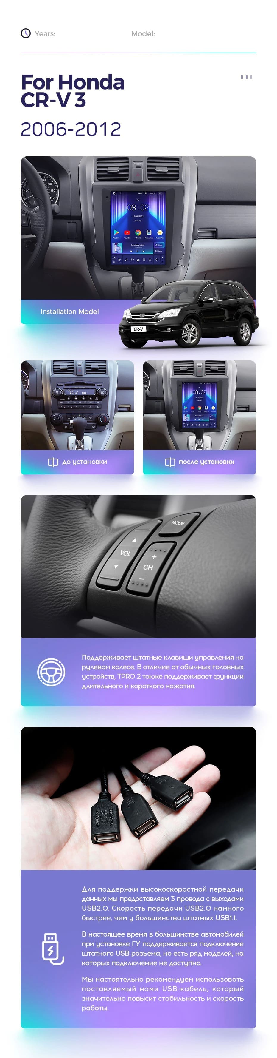 Штатная магнитола Tesla style Teyes TPRO 2 4/64 Honda CR-V 3 RE (2006-2012) Тип-A - купить всего за 39 900 руб. в интернет-магазине в Уфе Teyes.com.ru. ✓ Самый лучший выбор мультимедиа ✓ Лучшая замена штатному ГУ ✓ Тел. +7 (800) 775-31-74