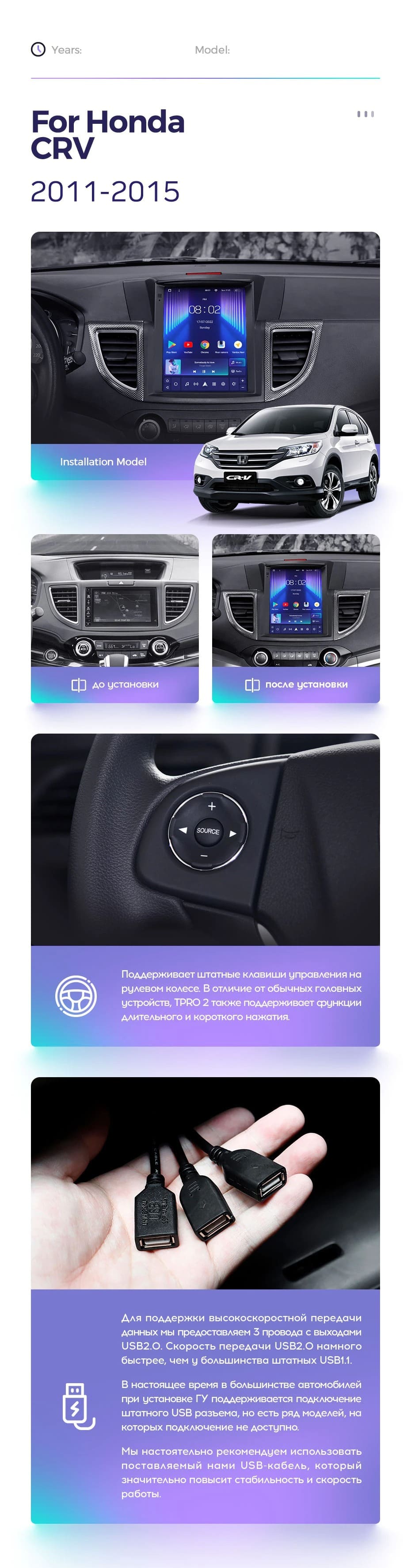 Штатная магнитола Tesla style Teyes TPRO 2 4/64 Honda CR-V 4 RM RE (2011-2015) Тип-C - купить всего за 39 400 руб. в интернет-магазине в Уфе Teyes.com.ru. ✓ Самый лучший выбор мультимедиа ✓ Лучшая замена штатному ГУ ✓ Тел. +7 (800) 775-31-74