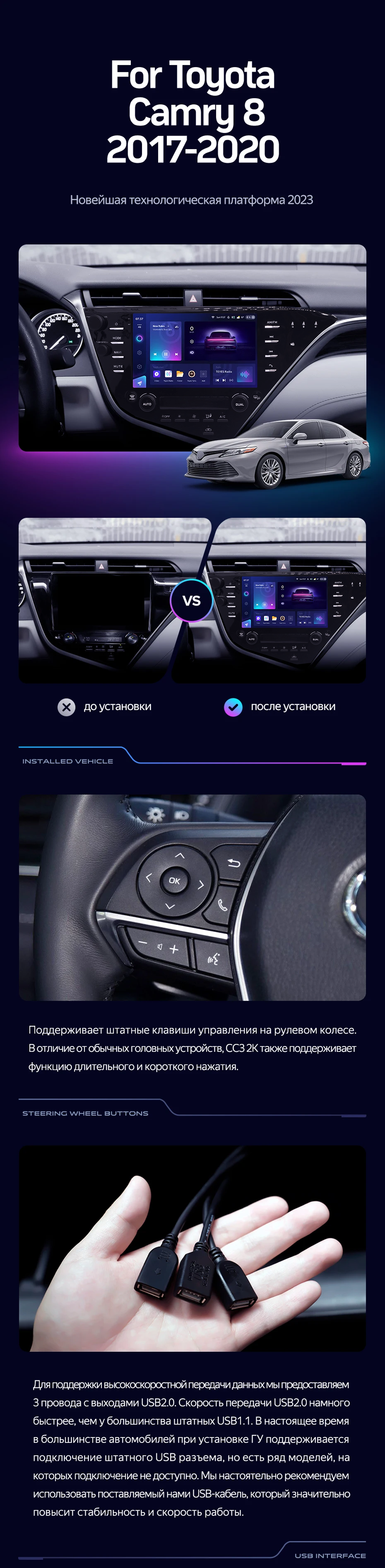 Штатная магнитола Teyes CC3 2K 4/32 Toyota Camry 8 XV 70 (2017-2020) F2 - купить всего за 60 300 руб. в интернет-магазине в Уфе Teyes.com.ru. ✓ Самый лучший выбор мультимедиа ✓ Лучшая замена штатному ГУ ✓ Тел. +7 (800) 775-31-74