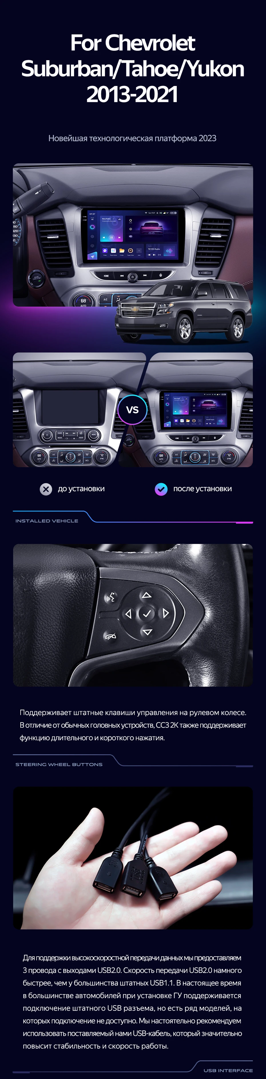 Штатная магнитола Teyes CC3 2K 4/64 Chevrolet Tahoe K2UC (2013-2021) - купить всего за 53 400 руб. в интернет-магазине в Уфе Teyes.com.ru. ✓ Самый лучший выбор мультимедиа ✓ Лучшая замена штатному ГУ ✓ Тел. +7 (800) 775-31-74