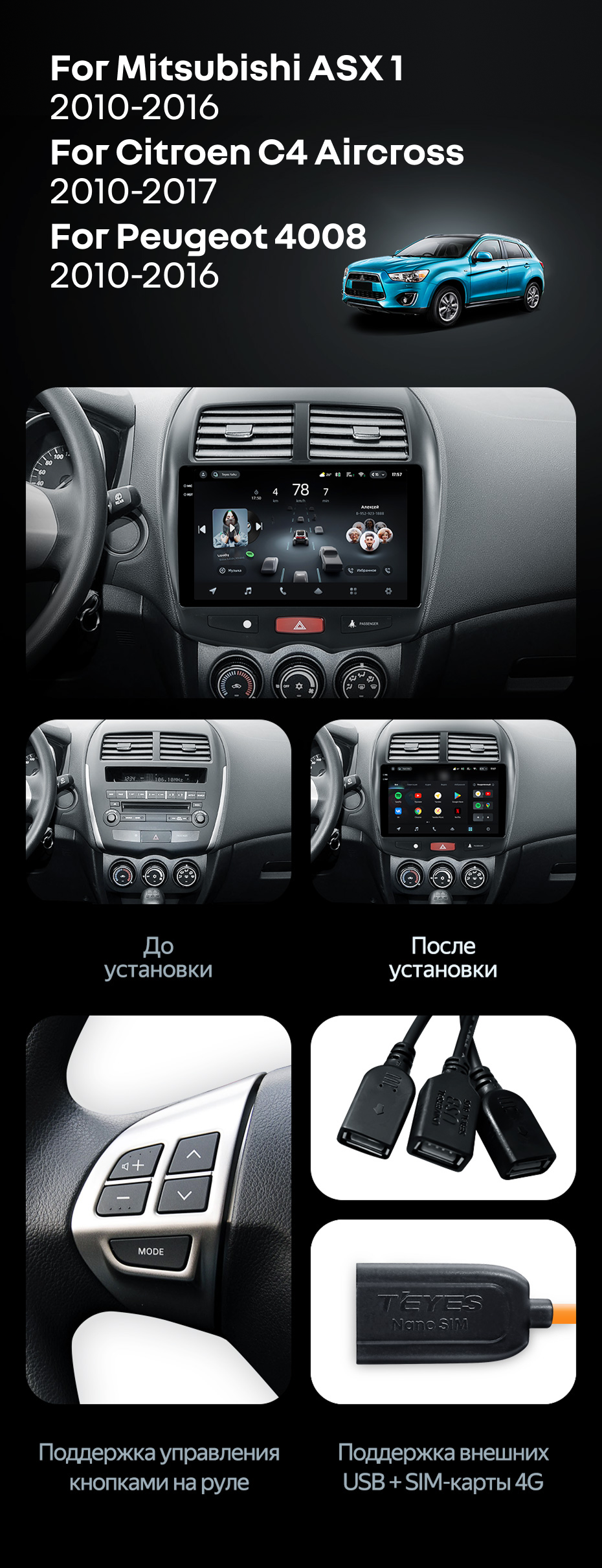 Штатная магнитола Teyes CC3L 4/32 Citroen C4 Aircross (2010-2017) Тип-A - купить всего за 26 630 руб. в интернет-магазине в Уфе Teyes.com.ru. ✓ Самый лучший выбор мультимедиа ✓ Лучшая замена штатному ГУ ✓ Тел. +7 (800) 775-31-74