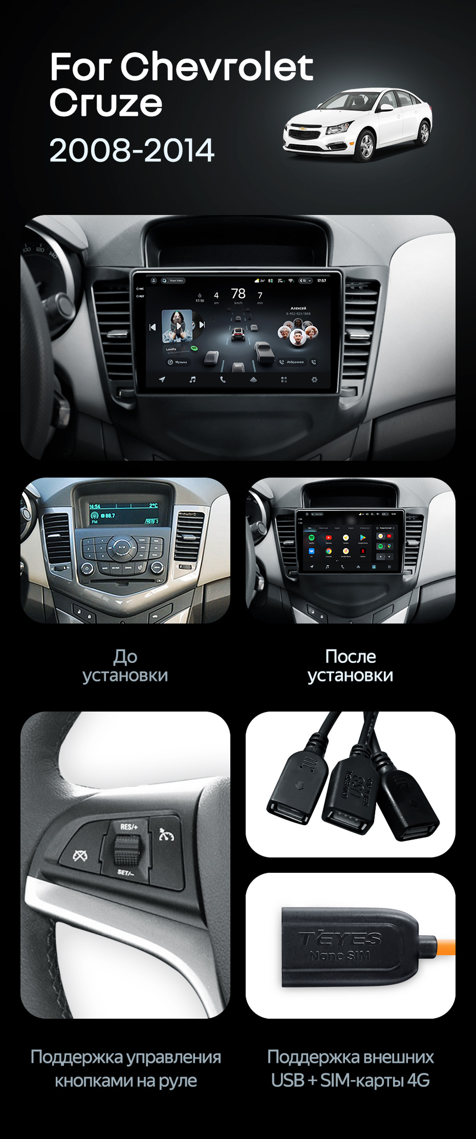 Штатная магнитола Teyes CC4 Pro 12/256 Chevrolet Cruze J300 (2008-2014) (13") - купить всего за 81 500 руб. в интернет-магазине в Уфе Teyes.com.ru. ✓ Самый лучший выбор мультимедиа ✓ Лучшая замена штатному ГУ ✓ Тел. +7 (800) 775-31-74