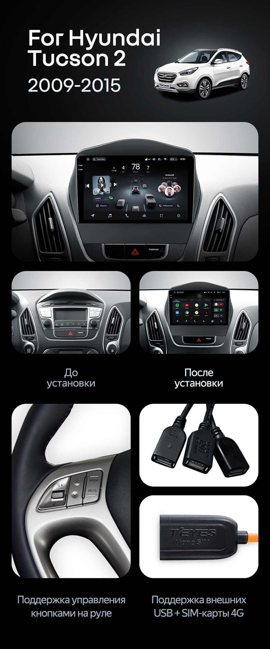 Штатная магнитола Teyes CC4 Pro 12/256 Hyundai ix35 (2009-2015) (Tucson 2) Тип-AB - купить всего за 72 690 руб. в интернет-магазине в Уфе Teyes.com.ru. ✓ Самый лучший выбор мультимедиа ✓ Лучшая замена штатному ГУ ✓ Тел. +7 (800) 775-31-74