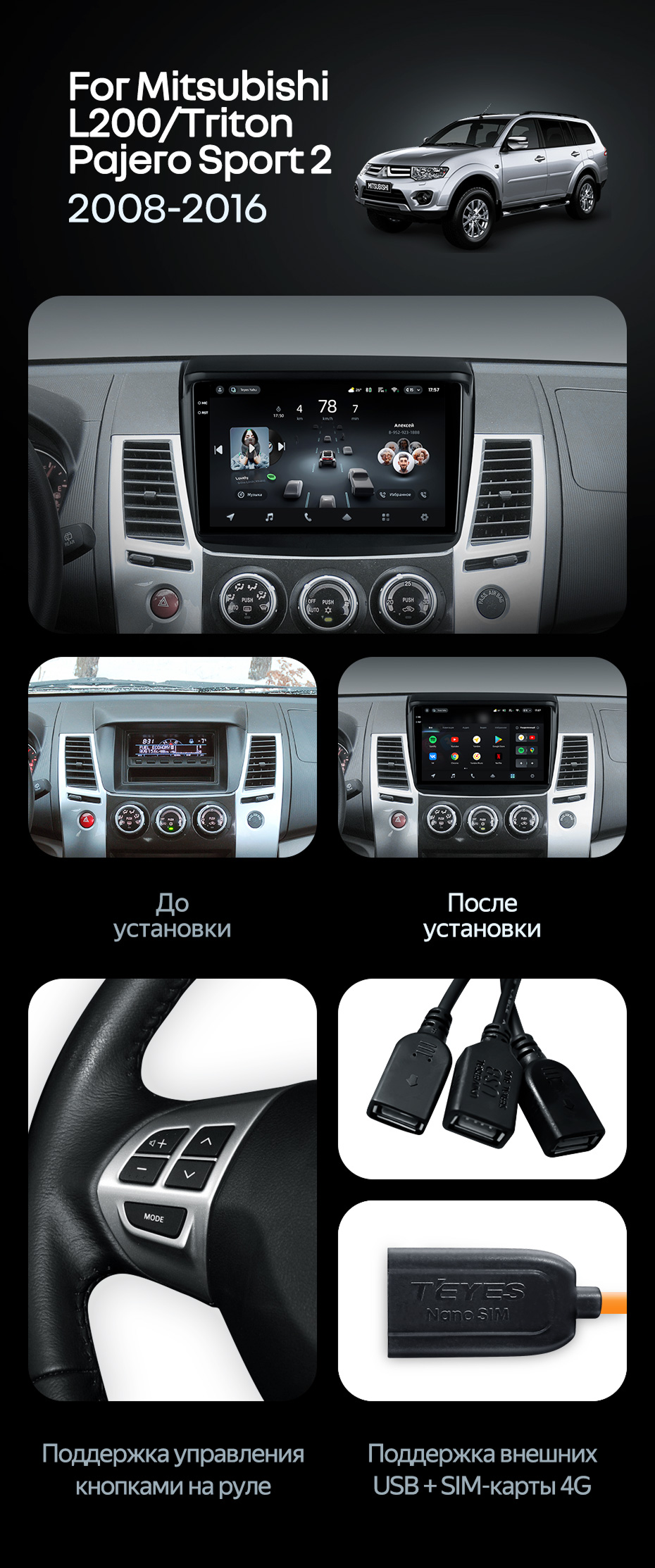 Штатная магнитола Teyes CC4 Pro 12/256 Mitsubishi L200 (2008-2016) - купить всего за 73 370 руб. в интернет-магазине в Уфе Teyes.com.ru. ✓ Самый лучший выбор мультимедиа ✓ Лучшая замена штатному ГУ ✓ Тел. +7 (800) 775-31-74