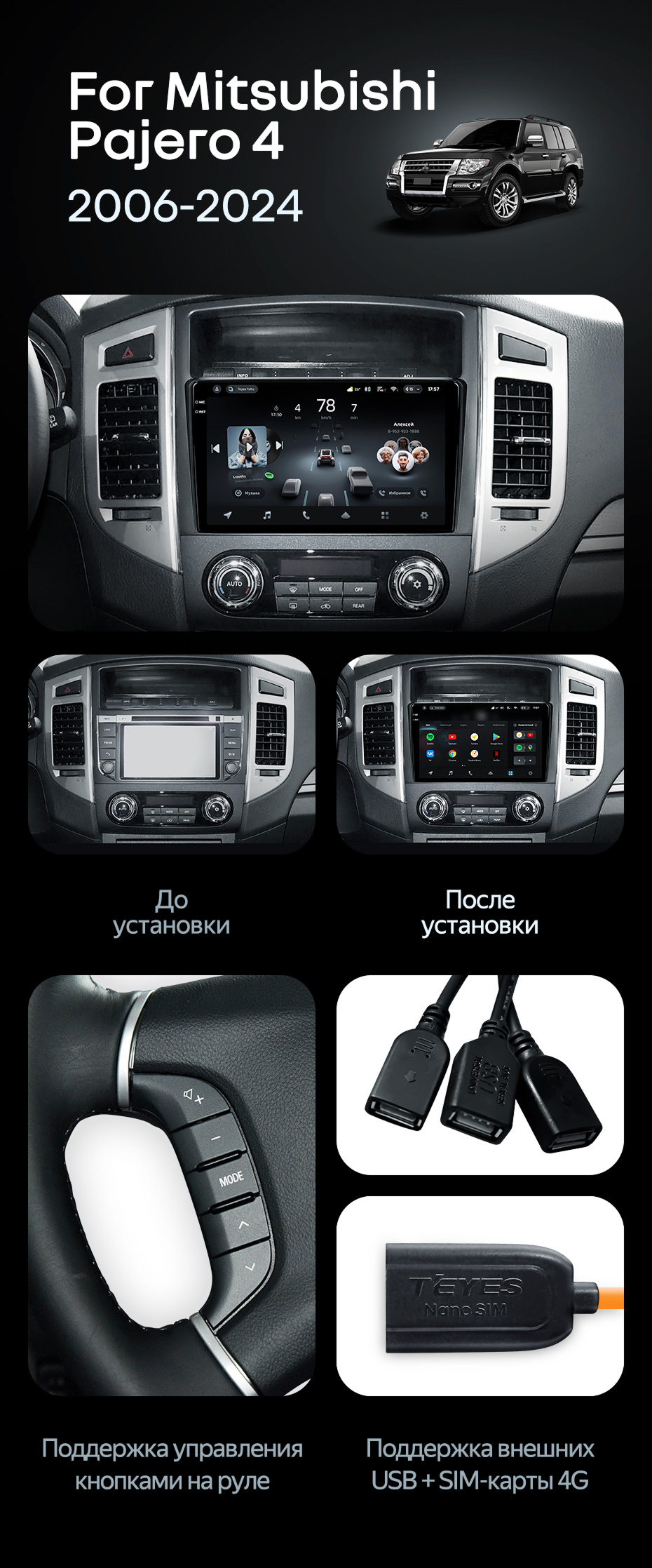Штатная магнитола Teyes CC4 Pro 12/256 Mitsubishi Pajero 4 V80 V90 (2006-2024) - купить всего за 73 850 руб. в интернет-магазине в Уфе Teyes.com.ru. ✓ Самый лучший выбор мультимедиа ✓ Лучшая замена штатному ГУ ✓ Тел. +7 (800) 775-31-74