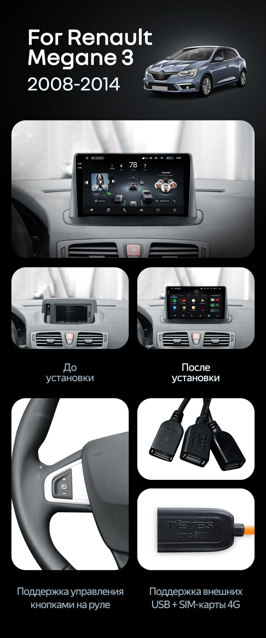 Штатная магнитола Teyes CC4 Pro 12/256 Renault Megane 3 (2008-2014) - купить всего за 76 630 руб. в интернет-магазине в Уфе Teyes.com.ru. ✓ Самый лучший выбор мультимедиа ✓ Лучшая замена штатному ГУ ✓ Тел. +7 (800) 775-31-74