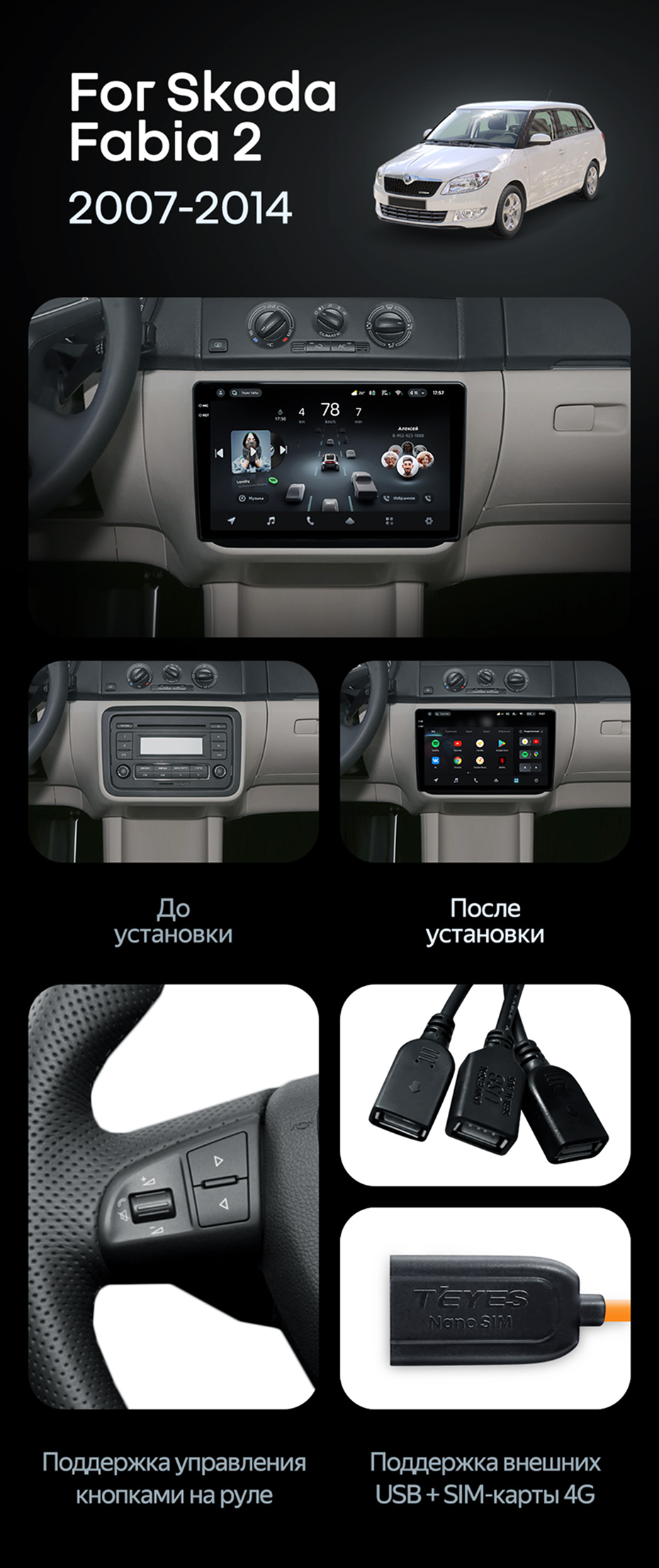 Штатная магнитола Teyes CC4 Pro 12/256 Skoda Fabia 2 (2007-2014) - купить всего за 73 380 руб. в интернет-магазине в Уфе Teyes.com.ru. ✓ Самый лучший выбор мультимедиа ✓ Лучшая замена штатному ГУ ✓ Тел. +7 (800) 775-31-74