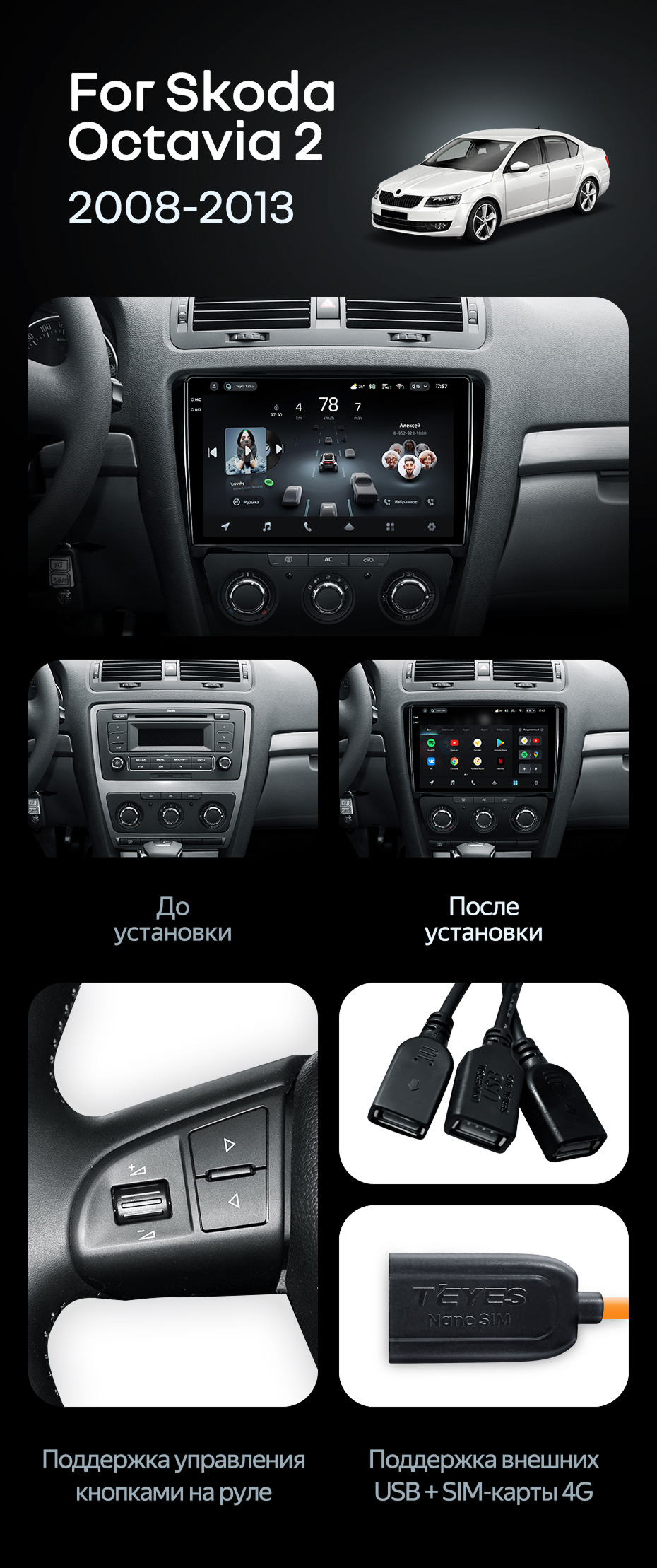 Штатная магнитола Teyes CC4 Pro 12/256 Skoda Octavia 2 A5 (2008-2013) - купить всего за 73 900 руб. в интернет-магазине в Уфе Teyes.com.ru. ✓ Самый лучший выбор мультимедиа ✓ Лучшая замена штатному ГУ ✓ Тел. +7 (800) 775-31-74