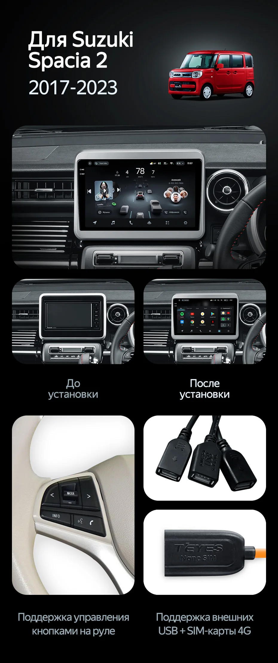 Штатная магнитола Teyes CC4 Pro 12/256 Suzuki Spacia 2 (2017-2023) - купить всего за 74 050 руб. в интернет-магазине в Уфе Teyes.com.ru. ✓ Самый лучший выбор мультимедиа ✓ Лучшая замена штатному ГУ ✓ Тел. +7 (800) 775-31-74
