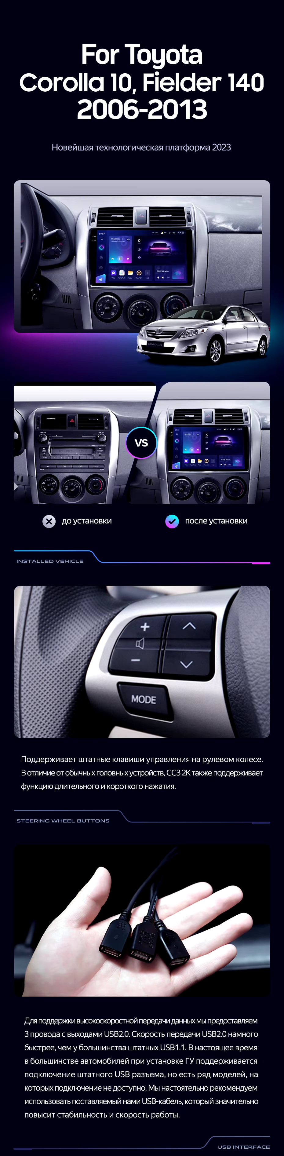 Штатная магнитола Teyes CC4 Pro 12/256 Toyota Corolla Fielder 140 (2006-2013) Тип-B (13") - купить всего за 80 700 руб. в интернет-магазине в Уфе Teyes.com.ru. ✓ Самый лучший выбор мультимедиа ✓ Лучшая замена штатному ГУ ✓ Тел. +7 (800) 775-31-74
