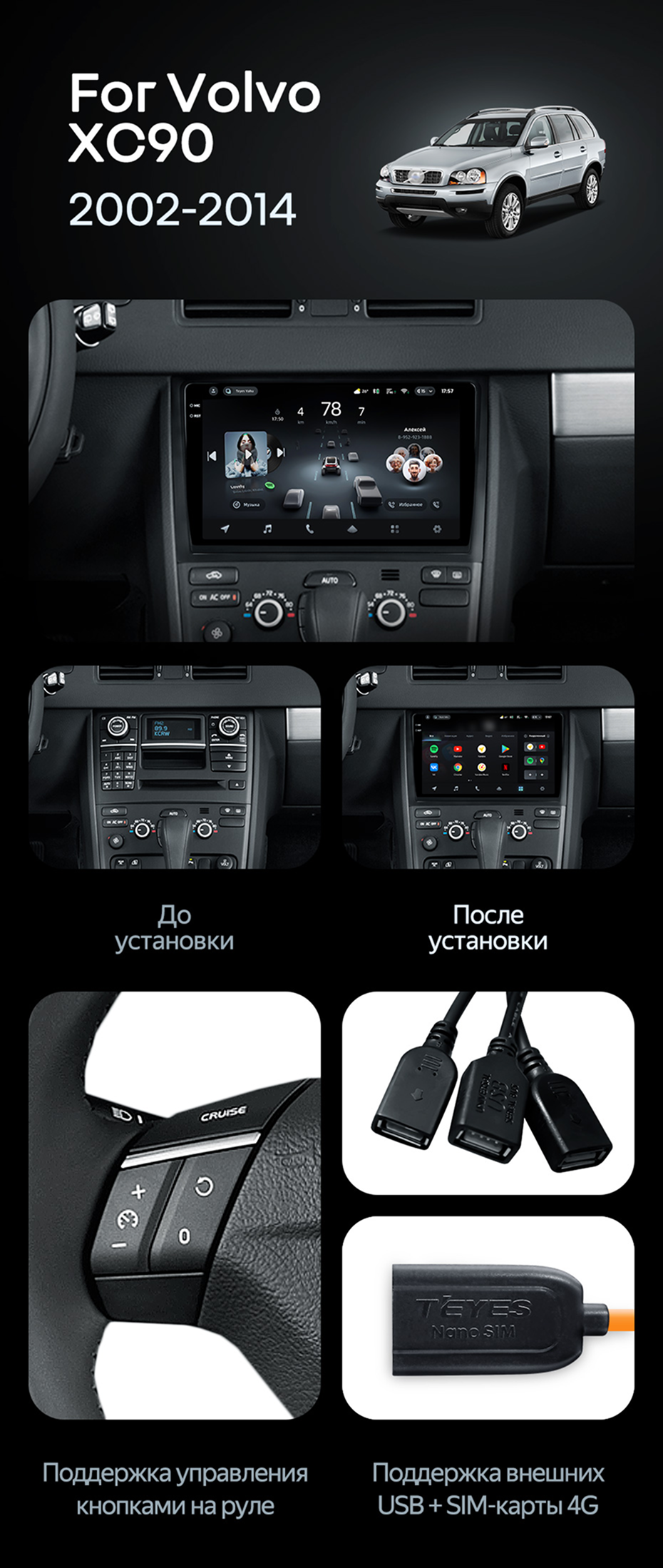 Штатная магнитола Teyes CC4 Pro 12/256 Volvo XC90 (2007-2014) F2 (комплект для установки нижней части) - купить всего за 76 900 руб. в интернет-магазине в Уфе Teyes.com.ru. ✓ Самый лучший выбор мультимедиа ✓ Лучшая замена штатному ГУ ✓ Тел. +7 (800) 775-31-74