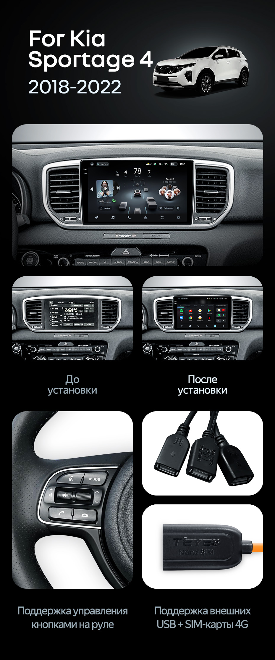 Штатная магнитола Teyes CC4 Pro 8/128 Kia Sportage 4 QL (2018-2022) Тип-A - купить всего за 64 635 руб. в интернет-магазине в Уфе Teyes.com.ru. ✓ Самый лучший выбор мультимедиа ✓ Лучшая замена штатному ГУ ✓ Тел. +7 (800) 775-31-74