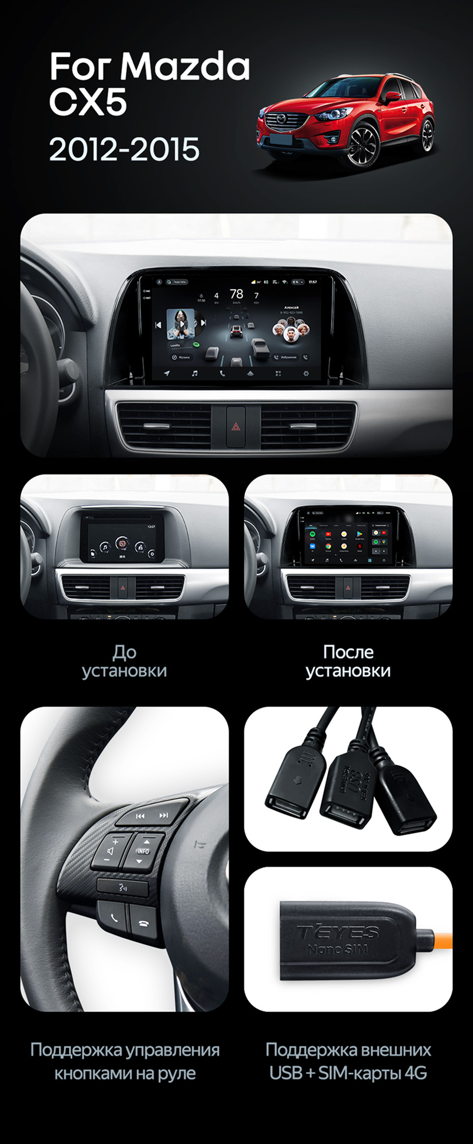 Штатная магнитола Teyes CC4 Pro 8/128 Mazda CX-5 (2012-2015) Тип-A - купить всего за 64 670 руб. в интернет-магазине в Уфе Teyes.com.ru. ✓ Самый лучший выбор мультимедиа ✓ Лучшая замена штатному ГУ ✓ Тел. +7 (800) 775-31-74