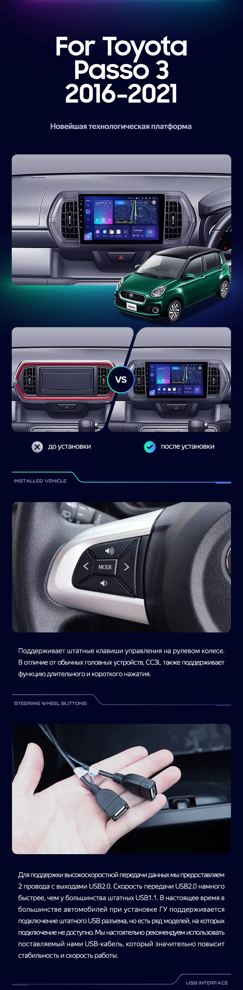 Штатная магнитола Teyes CC4L 6/64 Toyota Passo 3 (2016-2021) Правый руль - купить всего за 30 380 руб. в интернет-магазине в Уфе Teyes.com.ru. ✓ Самый лучший выбор мультимедиа ✓ Лучшая замена штатному ГУ ✓ Тел. +7 (800) 775-31-74