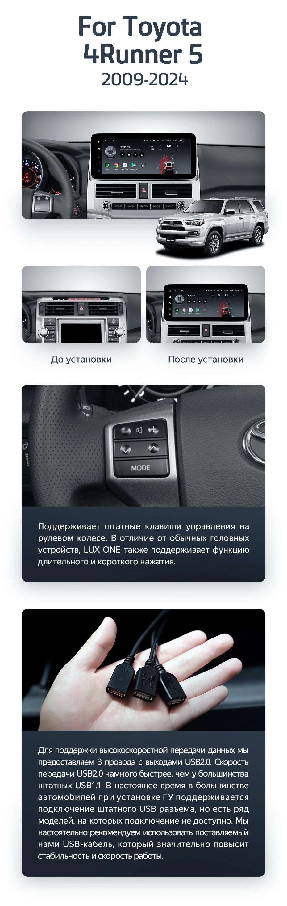Штатная магнитола Teyes LUX ONE 360 6/128 Toyota 4Runner 5 N280 (2009-2024) - купить всего за 72 900 руб. в интернет-магазине в Уфе Teyes.com.ru. ✓ Самый лучший выбор мультимедиа ✓ Лучшая замена штатному ГУ ✓ Тел. +7 (800) 775-31-74