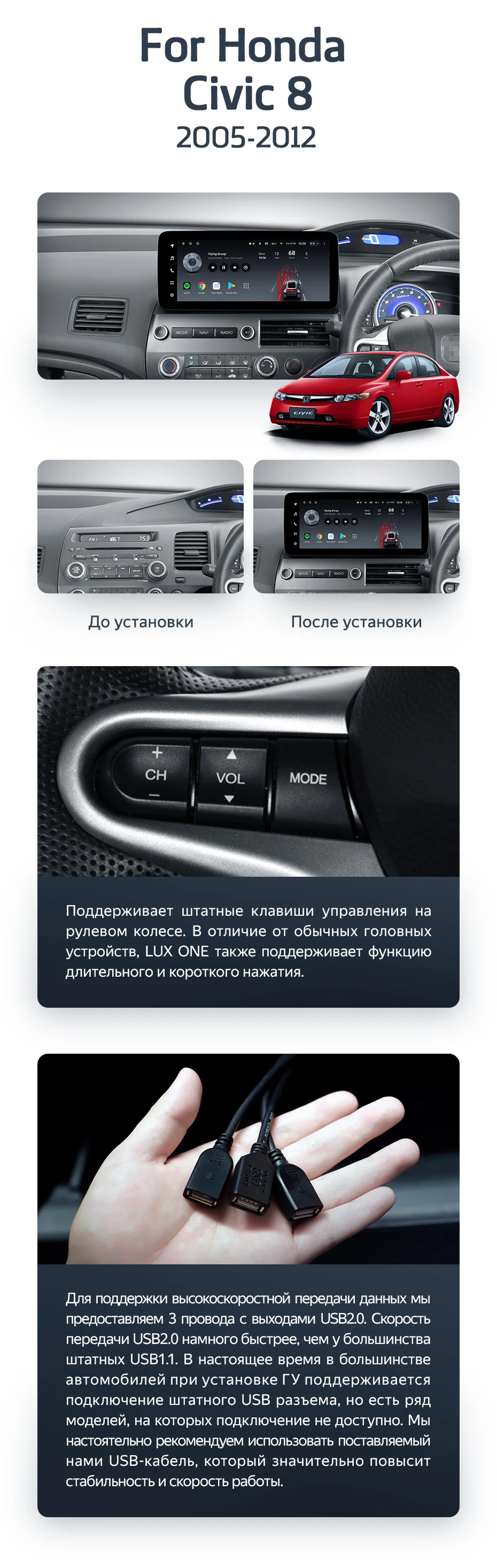Штатная магнитола Teyes LUX ONE 6/128 Honda Civic 8 FK FN FD (2005-2012) Правый руль - купить всего за 49 000 руб. в интернет-магазине в Уфе Teyes.com.ru. ✓ Самый лучший выбор мультимедиа ✓ Лучшая замена штатному ГУ ✓ Тел. +7 (800) 775-31-74