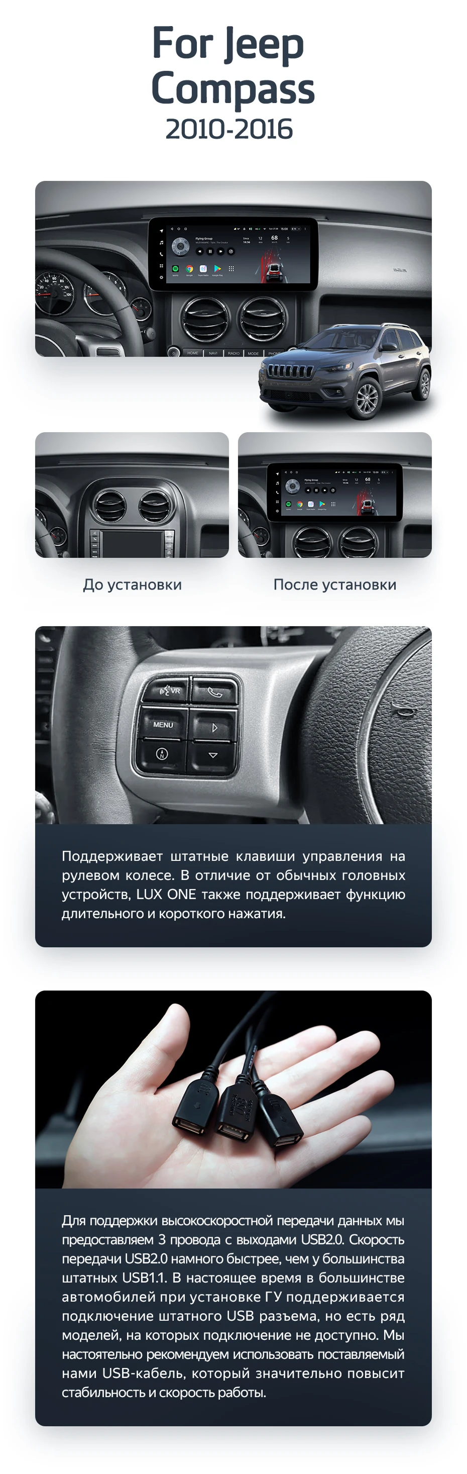 Штатная магнитола Teyes LUX ONE 6/128 Jeep Compass MK (2010-2016) - купить всего за 56 600 руб. в интернет-магазине в Уфе Teyes.com.ru. ✓ Самый лучший выбор мультимедиа ✓ Лучшая замена штатному ГУ ✓ Тел. +7 (800) 775-31-74