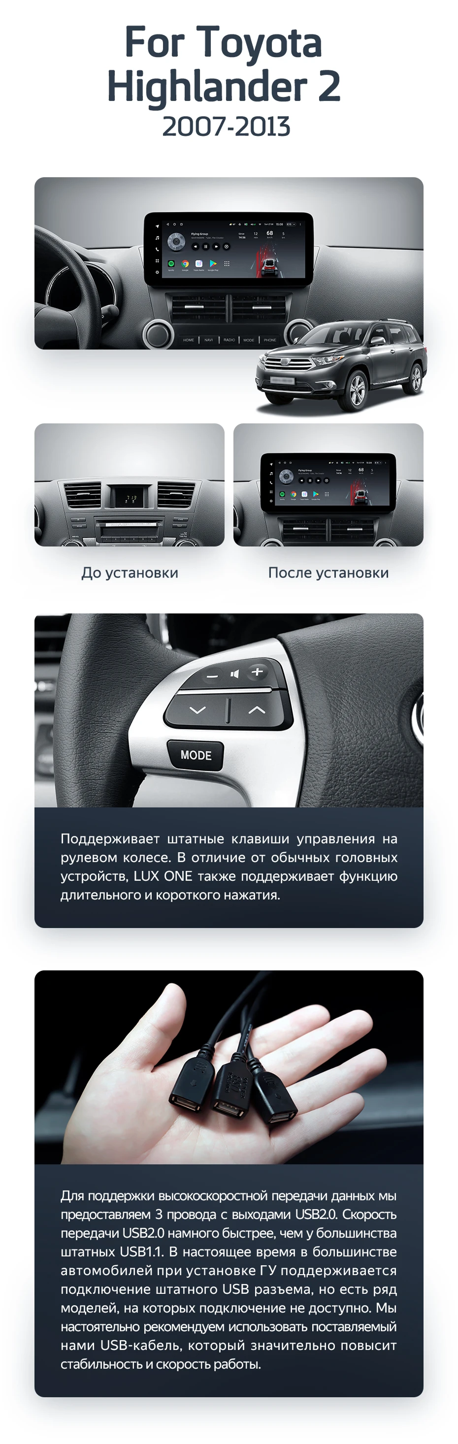 Штатная магнитола Teyes LUX ONE 6/128 Toyota Highlander 2 XU40 (2007-2013) - купить всего за 50 100 руб. в интернет-магазине в Уфе Teyes.com.ru. ✓ Самый лучший выбор мультимедиа ✓ Лучшая замена штатному ГУ ✓ Тел. +7 (800) 775-31-74
