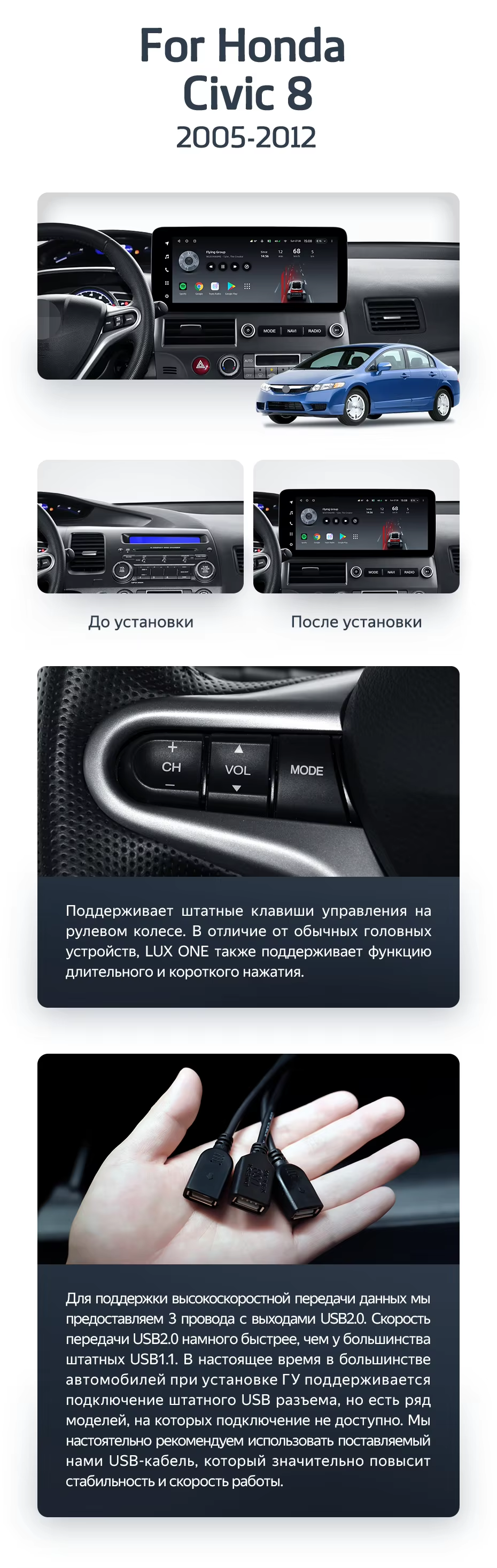 Переходная рамка Honda Civic 8 FK FN FD 2005-2012 (12,3") - купить всего за 6 800 руб. в интернет-магазине в Уфе Teyes.com.ru. ✓ Самый лучший выбор мультимедиа ✓ Лучшая замена штатному ГУ ✓ Тел. +7 (800) 775-31-74